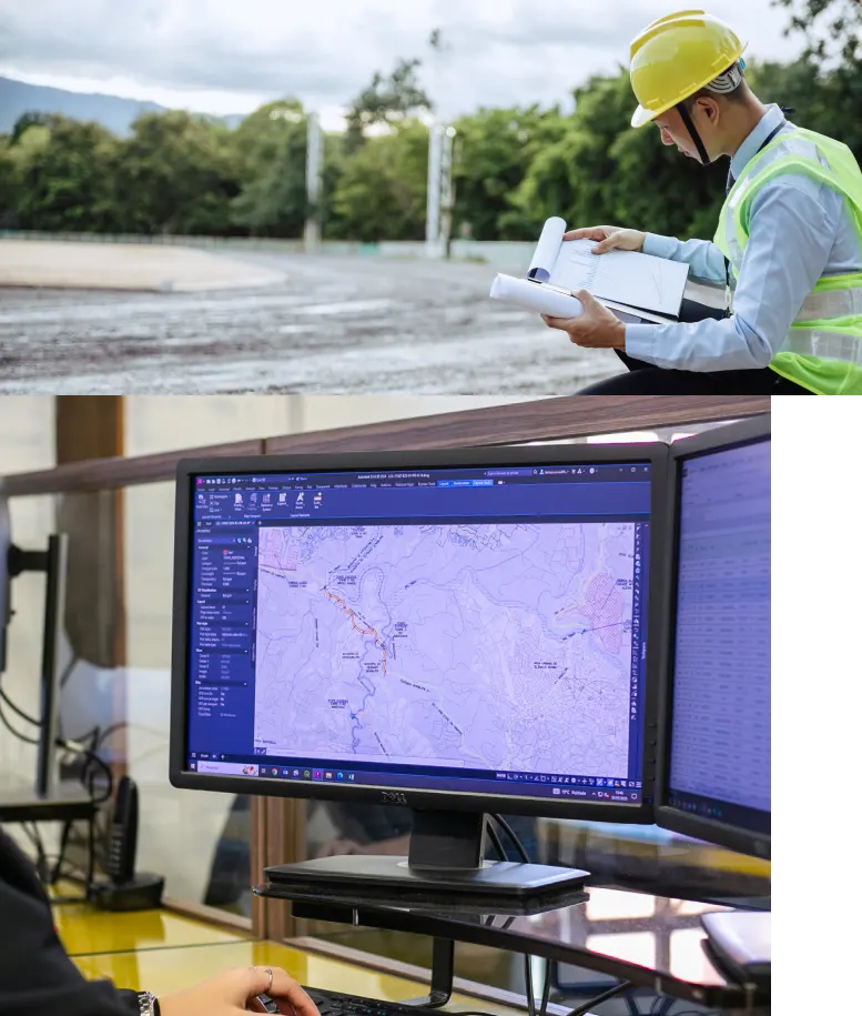 Com base na ISO 9001, os projetos garantem segurança técnica e jurídica, com rastreio de versões, ARTs e matriz de riscos. O planeamento assegura prazos, custos, fluidez e segurança viária.